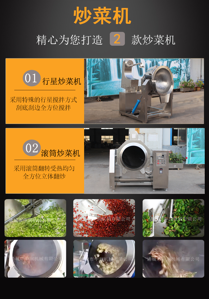 二、炒制烹飪區(qū):夾層鍋、翻籃漂燙鍋、油炸鍋、高壓蒸煮鍋、行星攪拌炒鍋、多爪炒鍋。