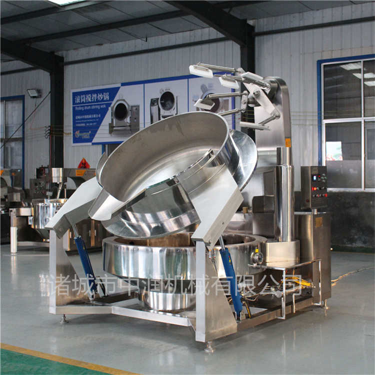 火鍋炒料機采用行星攪拌,炒制過程中物料攪拌更均勻,刮底效果好,不會出現(xiàn)糊鍋現(xiàn)象,受熱面積大,適用于熬制醬料火鍋底料,縮短熬制時間,無需人工炒制、鍋體可傾,液壓控制,自動卸料、非常方便。采用背面集中排廢氣,作業(yè)舒適安全,攪拌頭在鍋內(nèi)自轉(zhuǎn)和公轉(zhuǎn),能增強炒制時間。