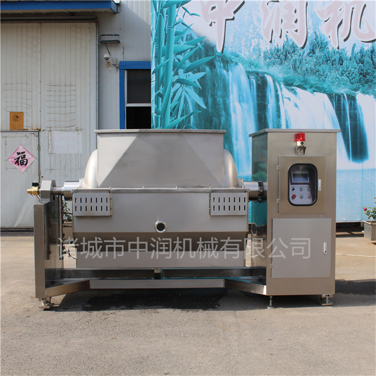 本機(jī)的U型鍋體,鍋體及表面接觸部分均采用304不銹鋼制造,易于清洗,符合食品衛(wèi)生要求。全封閉槽形鍋體,夾套采用電磁、電加熱導(dǎo)熱油、燃?xì)?、蒸汽加熱等加熱方式,受熱面積大,熱效率高,適合不同物料對溫度和升溫速度的要求。無段變速與蝸輪、減速機(jī)的組合傳動,增大了橫軸攪拌的力矩。采用聚四氟乙烯材質(zhì)刮板的攪拌器,在物料的翻滾攪拌過程中,攪拌器與鍋體的充分接觸,確保了無攪拌死角。鍋體的開蓋、卸料、復(fù)位采用氣壓、機(jī)械傳動控制,操作為方便。
