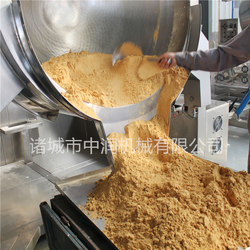 油茶面炒鍋又稱行星攪拌炒鍋,因其特殊的行星攪拌方式而得名,采用自轉(zhuǎn)與公轉(zhuǎn)相結(jié)合的原理,在炒面過(guò)程中刮底刮邊無(wú)死角攪拌,炒出的面粉不糊鍋不結(jié)球,顏色呈金黃色,品相好。整個(gè)炒面過(guò)程僅需啟動(dòng)按鈕便可,全自動(dòng)、標(biāo)準(zhǔn)化的模式生產(chǎn)出的食品更加安全衛(wèi)生。