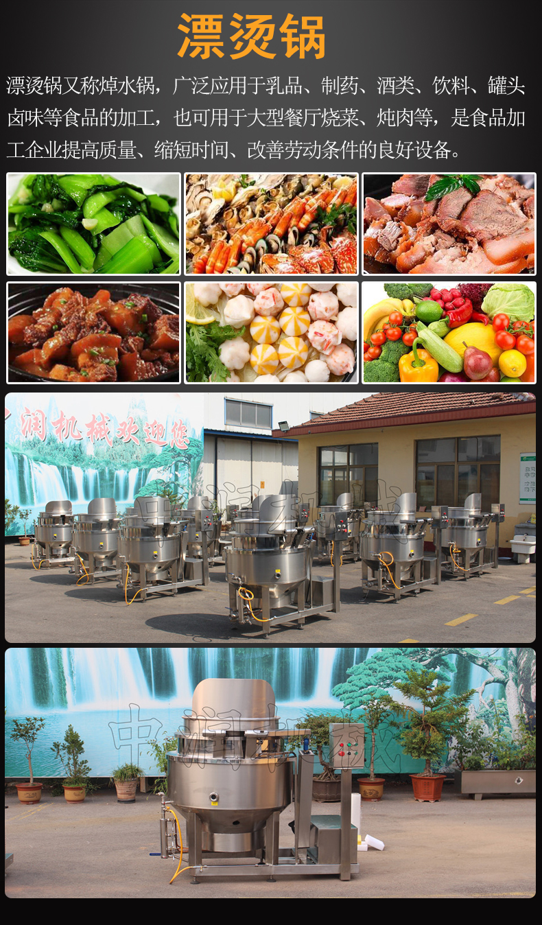 二、炒制烹飪區(qū):夾層鍋、翻籃漂燙鍋、油炸鍋、高壓蒸煮鍋、行星攪拌炒鍋、多爪炒鍋。