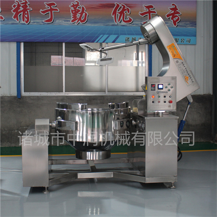 3、采用液壓升降,翻鍋運(yùn)料,免拆裝攪拌器,節(jié)省人力,降低勞動強(qiáng)度,是性能優(yōu)良的食品加工設(shè)備。