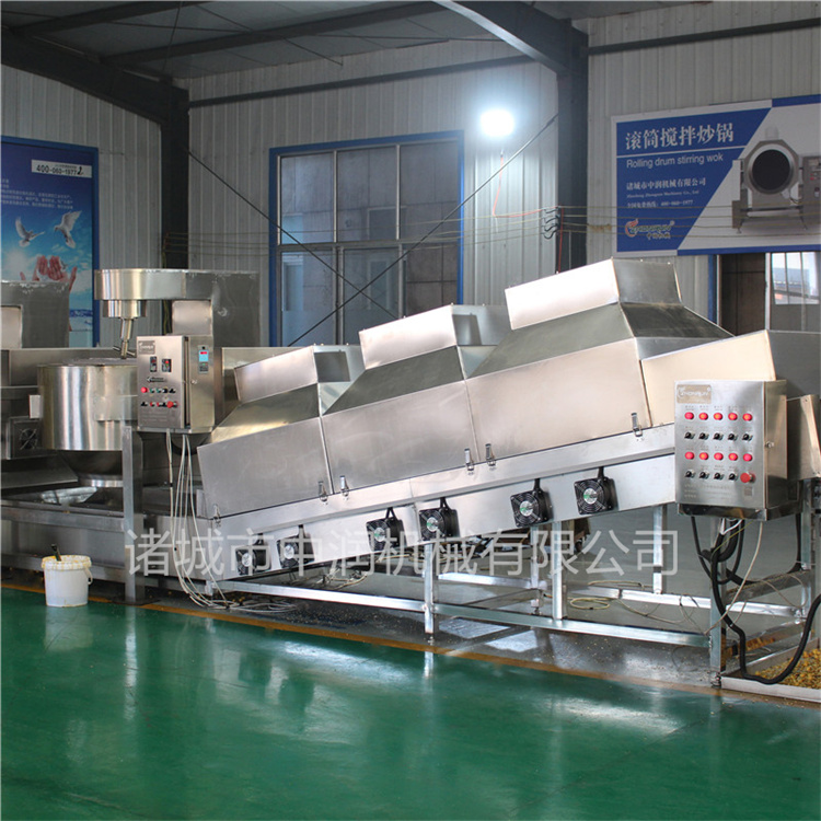 中潤機(jī)械爆米花機(jī)生產(chǎn)線可以根據(jù)客戶的產(chǎn)量來搭配機(jī)器和流水線的長度,從單機(jī)爆出來爆米花倒在傳送帶上,進(jìn)行打散,冷卻,傳送,篩選到爆米花直接包裝,大大提高了效率,增加了產(chǎn)量,而且經(jīng)過篩選的爆米花顆顆飽滿,球形好,裹糖均勻,不粘鍋。