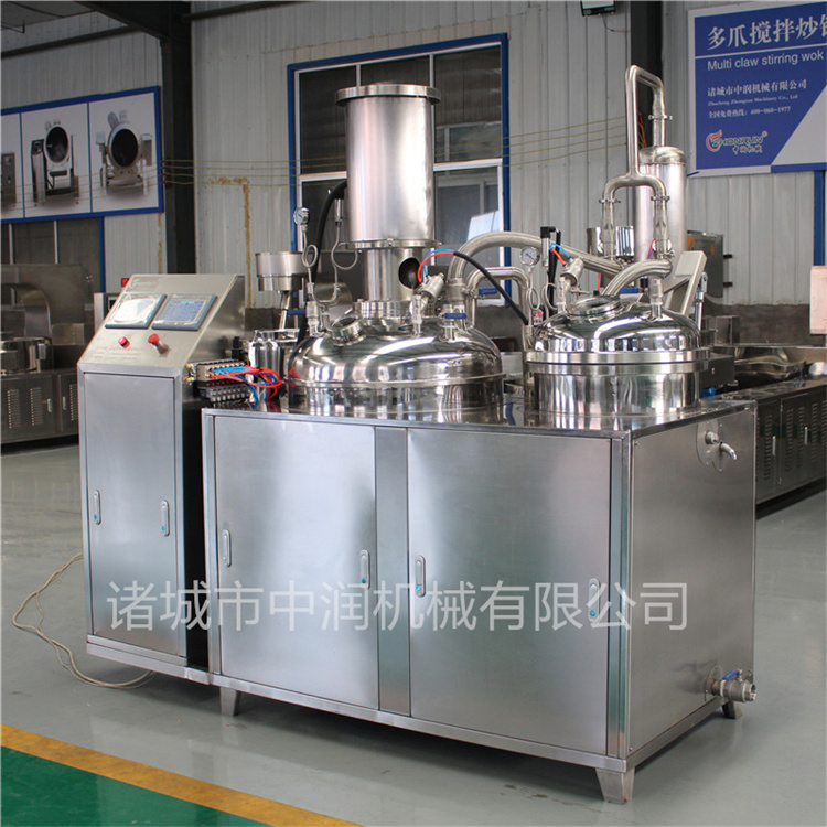 中潤真空浸糖鍋利用真空泵抽負壓的作用,使糖分快速滲透入果蔬,果脯細胞纖維中,由于整個浸漬過程是在密封狀態(tài)下進行,浸糖時間快速,增加了產(chǎn)品營養(yǎng)成分,保持了果蔬,果脯原有的色澤與風(fēng)味,透明度更高。中潤果脯浸糖鍋采用食品級不銹鋼加厚板材制作,設(shè)備使用壽命長。