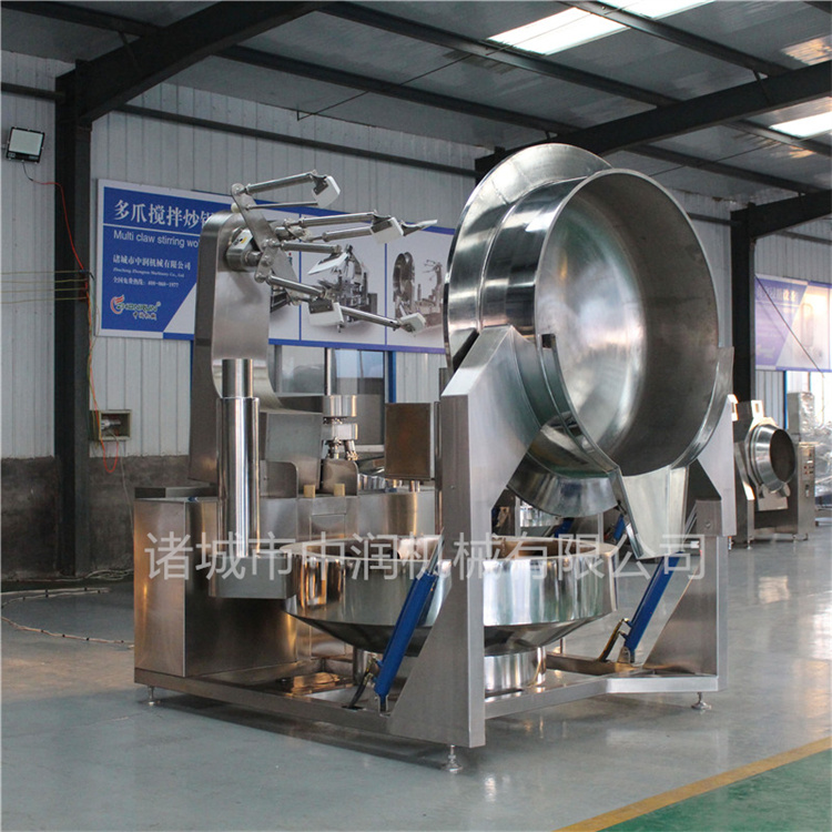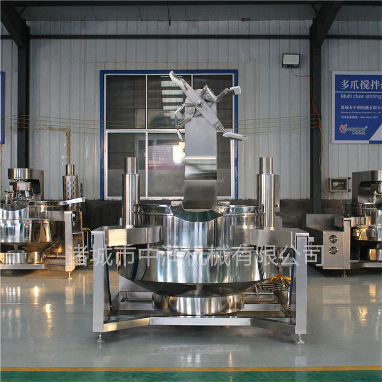 炒醬鍋鍋體為一次沖壓成型的半球形不銹鋼鍋體,采用蒸汽、燃?xì)?、電磁等加熱形式,攪拌方式采用特殊的傾斜式傳動(dòng),使用的行星式攪拌器與鍋體充分接觸,實(shí)現(xiàn)傳動(dòng)公轉(zhuǎn)與自轉(zhuǎn)的不整數(shù)傳動(dòng)比,使鍋內(nèi)無(wú)攪拌死角。使用的傳動(dòng)與密封結(jié)構(gòu),使傳動(dòng)部分與鍋內(nèi)潔凈、衛(wèi)生。采用變頻調(diào)速動(dòng)力,運(yùn)行更平穩(wěn)。另本機(jī)采用液壓升降,翻鍋運(yùn)料,免拆裝攪拌器,節(jié)省人力,降低勞動(dòng)強(qiáng)度,是性能優(yōu)良的食品加工設(shè)備。