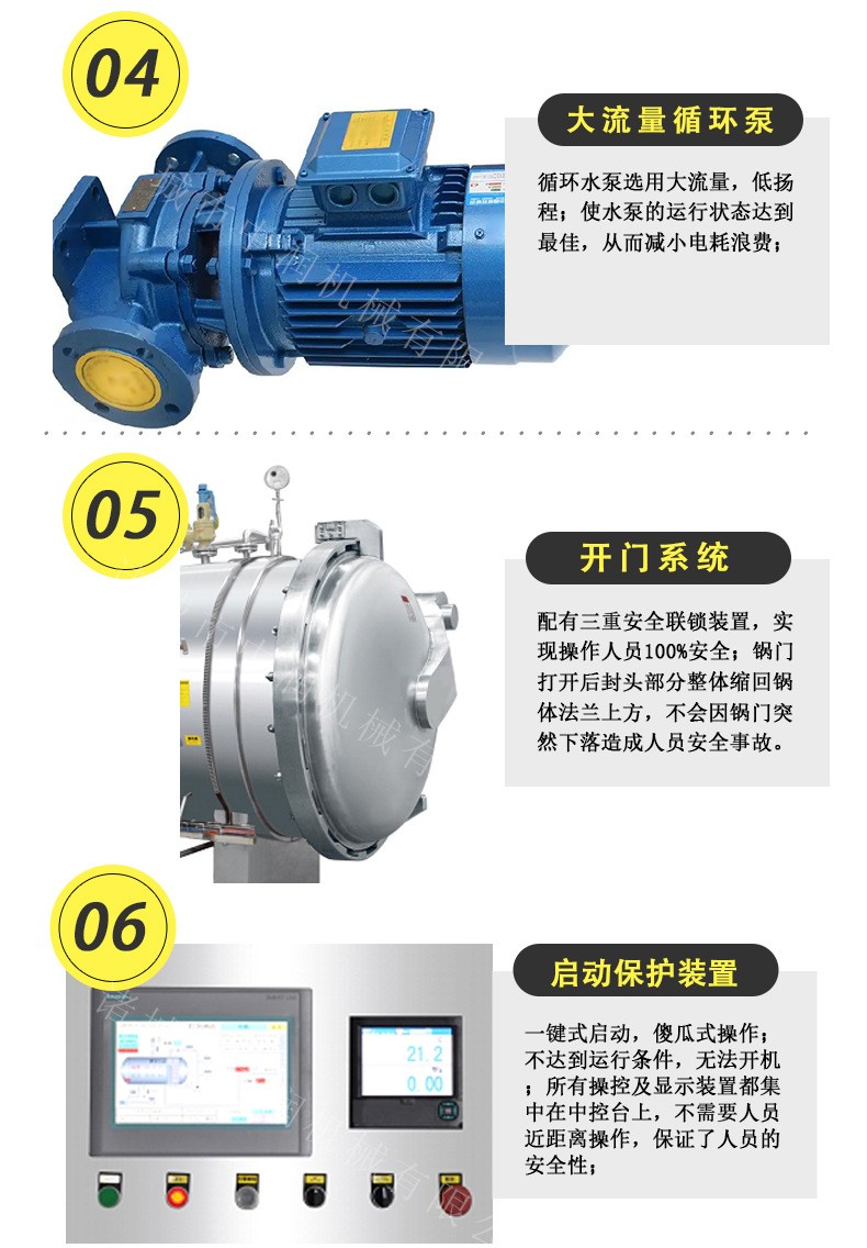 減少蒸汽消耗,蒸汽、霧化后的殺菌水在殺菌釜內(nèi)直接進(jìn)行熱混合,提高升溫降溫的速度。